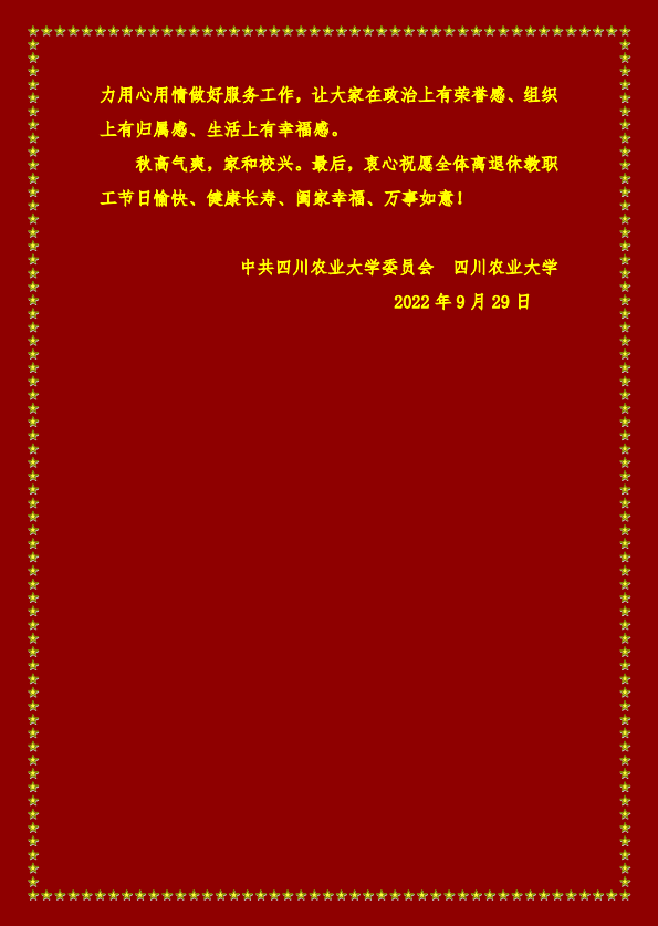 重阳节致全校离退休教职工的慰问信