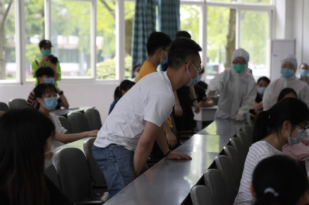 防新冠肺炎应急处置演练针对学生返校后可能遇到的突发情况,模拟学生在教室、图书馆等场所出现体温异常、咳嗽等情况的场景,围绕病例的发现与报告、病例转运、密切接触者应急处置、现场安全管控等重点环节进行了认真系统的演练,并结合实际对演练中存在的问题与不足进行了分析。
