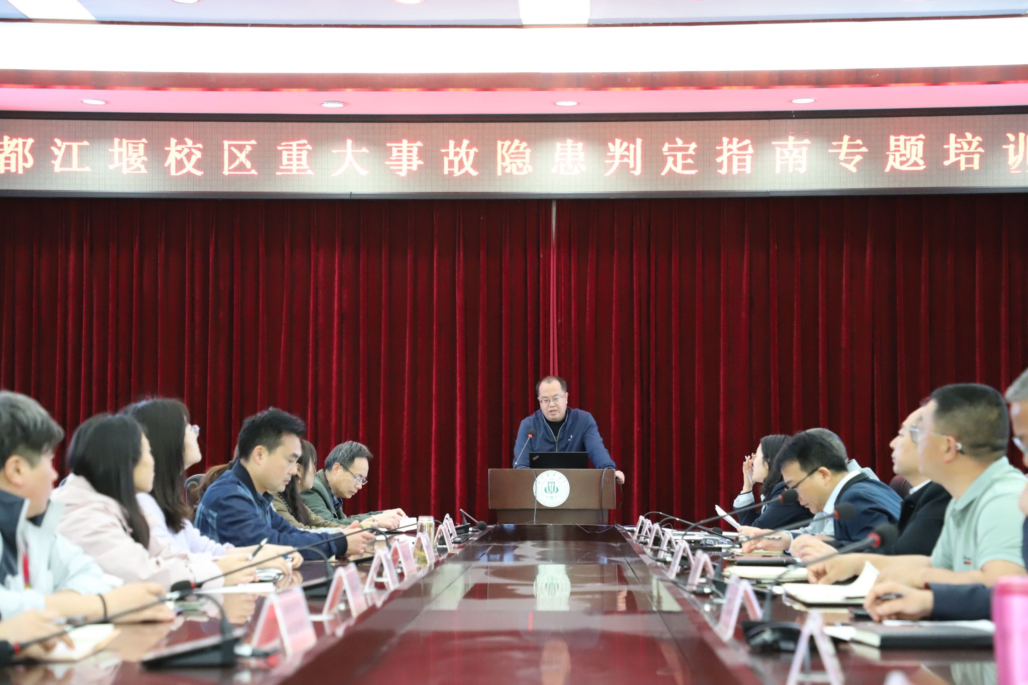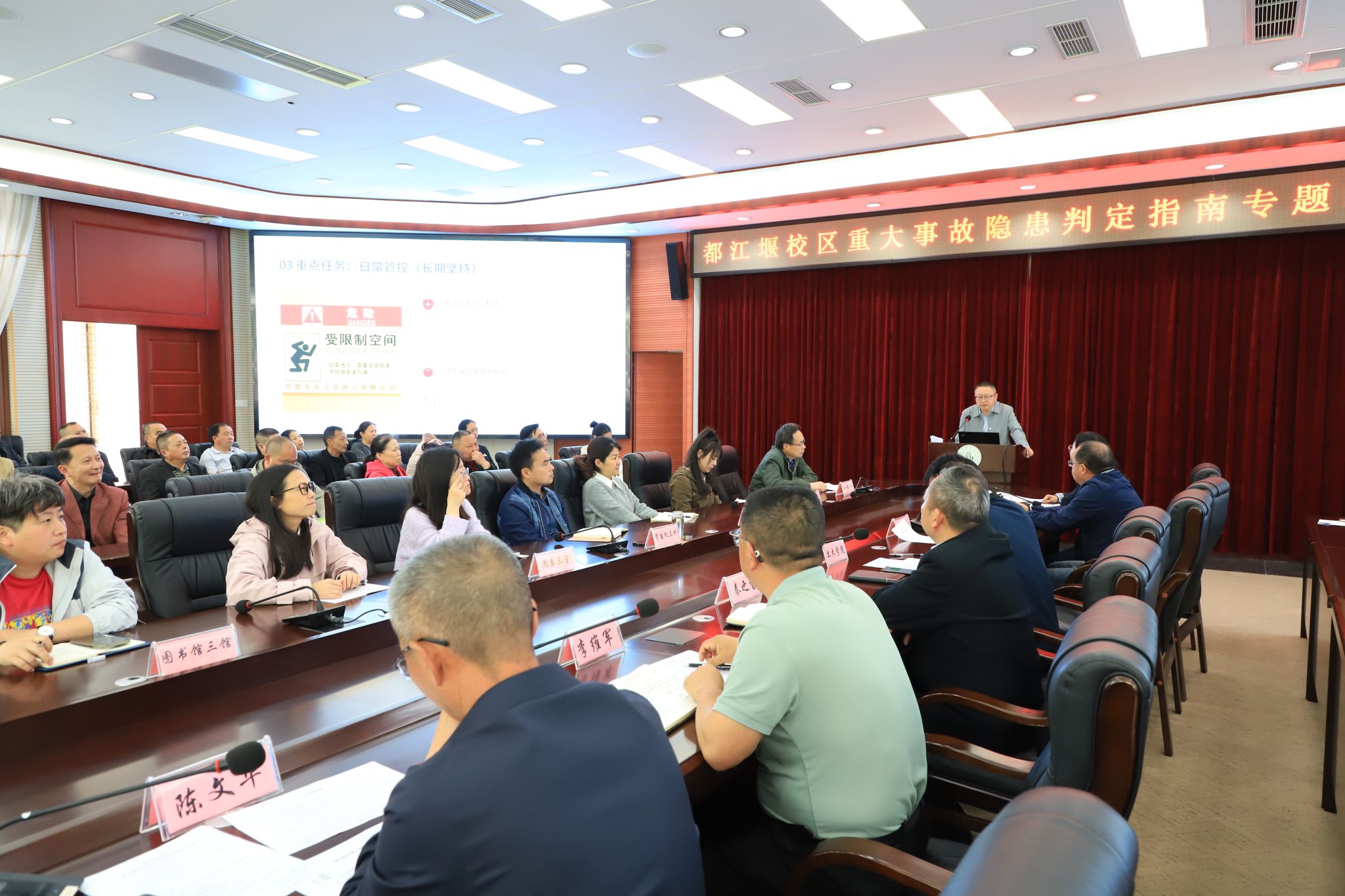 会上,综管办保卫部主任甘发云、副主任江丽和后管科科长刘健康先后分别对《四川省教育系统重大事故隐患判定指南》、《2026年四川农业大学重大事故隐患专项排查整治行动方案》、《2026年校园有限空间安全生产专项整治工作方案》等重要文件精神进行了系统解读,明确了隐患判定标准、排查重点及整治要求。综管办党委书记陈文华就《都江堰校区重大事故隐患专项排查整治任务分解》进行了详细说明,强调要将责任落实到具体部门和个人,确保各项排查整治任务有序推进。