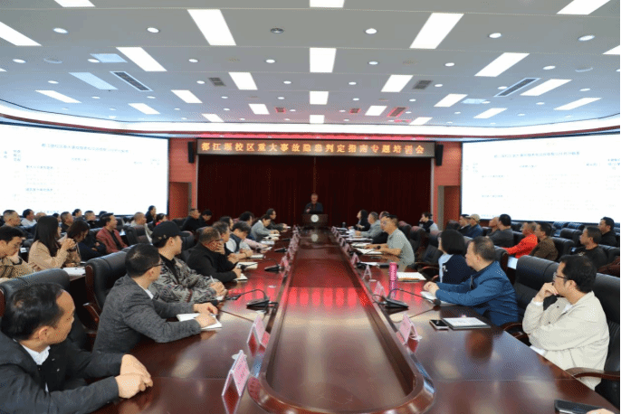 4月21日,都江堰校区综管办在1114教室组织召开重大事故隐患排查整治专题培训会。校区综管办全体职工、驻校区教学单位和学校直属部门代表、食堂合作企业和施工单位代表共计120余人参加了此次培训会。